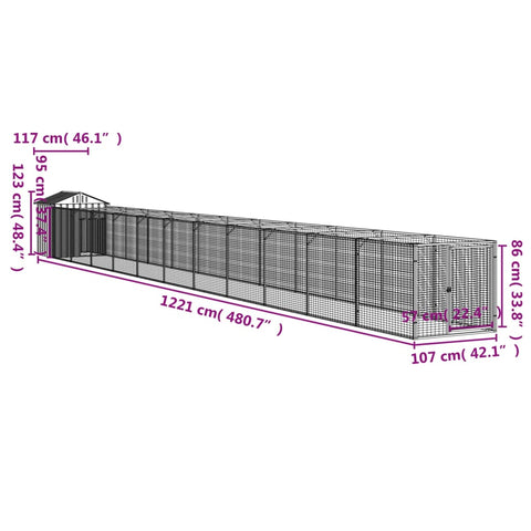 Casetta Cani Tetto Grigio Chiaro 117x1221x123cm Acciaio Zincato