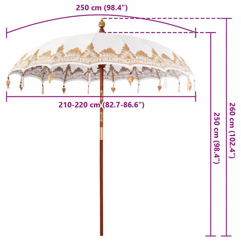 Il parasole balinese è un bellissimo ombrello per esterno che porta un tocco di eleganza esotica a qualsiasi giardino o terrazza. Questa struttura da patio ha una copertura rotonda in cotone, ricamata a mano, che lo rende davvero unico. Perfetto per le feste estive, trasmette vibrazioni tropicali rilassanti mentre offre l'ombra necessaria con il suo ampio diametro. La sua estetica balinese serena porta un fascino naturale che si adatta perfettamente sia ai pranzi all'aperto sia ai momenti di relax sotto la copertura di questo parasole speciale.