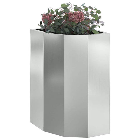 Costruzione in acciaio resistente: Questo vaso è fatto in acciaio di alta qualità, robusto contro le intemperie. È fatto per durare davanti ai diversi climi, ed è perfetto se vuoi un tocco di stile nel tuo spazio esterno. Design angolare: È progettato per adattarsi meglio agli angoli, massimizzando l'uso dello spazio nel tuo giardino o patio. La sua struttura intelligente offre più spazio per le piante, rendendolo ideale per aree compatte che hanno bisogno di un po'di verde. Istruzioni di assemblaggio incluse: Anche se serve un po'di aiuto per assemblarlo con un cacciavite, il processo è semplice e viene con istruzioni chiare. Così il tuo vaso è pronto per le tue piante in un attimo, aggiungendo un'atmosfera armoniosa al tuo spazio esterno. Ottimizzato per uso esterno: Questo vaso è fatto per essere usato all'aperto, perfetto per terrazze, angoli di giardino o patii. La sua costruzione robusta assicura che resista a diversi tipi di clima, offrendoti una soluzione flessibile per piantare. Migliora l'estetica del giardino: Con il suo design elegante e semplice, questo vaso arricchisce l'atmosfera di qualsiasi area esterna. Adatto a vari tipi di piante, accentua la bellezza naturale mantenendo anche la funzionalità.- Colore: Argento