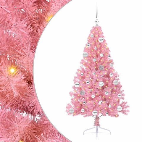 Albero di Natale artificiale con luci integrate Rosa 150 cm PVC