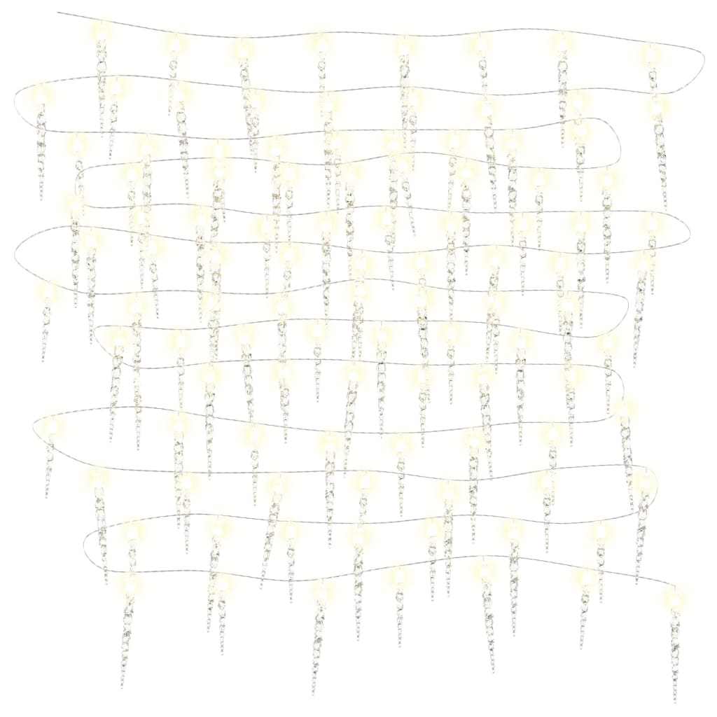 - 100 luci LED a forma di ghiacciolo: questa catena luminosa è composta da un totale di 100 ghiaccioli LED a risparmio energetico che creeranno uno spettacolo di luci magico!