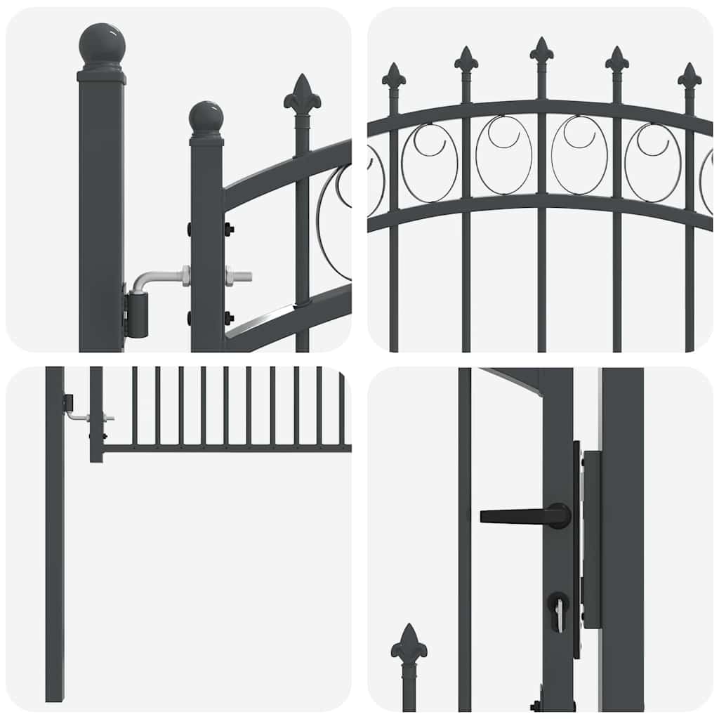 Questo cancello con spuntoni rappresenta la semplicità moderna, con una struttura in acciaio verniciato a polvere dalle linee pulite e pochi fronzoli. È pensato per ambienti esterni come giardini e terrazze, combinando perfettamente stile e praticità. Il design ad arco lo rende non solo funzionale, ma anche un elemento bello per qualsiasi spazio esterno. La costruzione robusta assicura prestazioni affidabili in diverse condizioni atmosferiche.