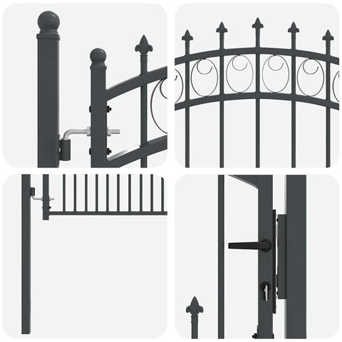 - Design arcuato elegante: Con un elegante top ad arco e spuntoni decorativi, questo cancello si adatta a molti stili di giardino. Mette insieme eleganza classica e un tocco moderno, aumentando l'appeal estetico di qualsiasi area esterna. Si inserisce perfettamente nel contesto naturale, rendendo la barriera un elemento stiloso.