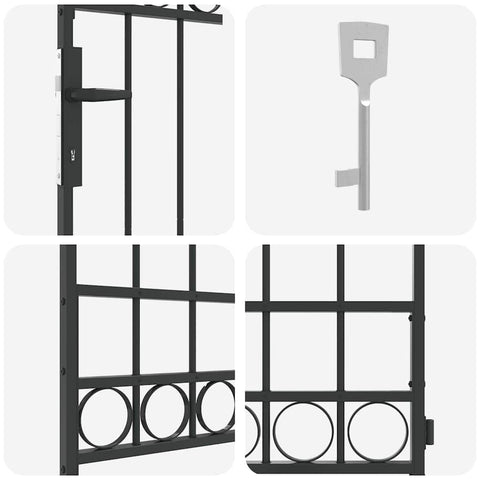 - Componenti Inclusi: Ogni set di cancello include tre chiavi e tutti gli accessori necessari per l'assemblaggio, consentendo una chiusura sicura e un montaggio semplice. Il design con porta singola bloccabile aumenta la sicurezza, garantendo tranquillità. Con una cima ad arco classica, si integra perfettamente negli spazi esterni tradizionali.