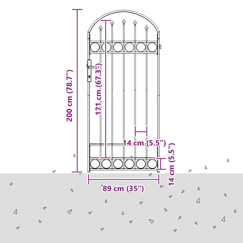 - Caratteristiche / Funzione / Design: Il design è accentuato da una cima ad arco, offrendo una silhouette attraente che completa gli ambienti degli giardini classici. La caratteristica bloccabile garantisce sicurezza mantenendo un aspetto sofisticato. Questa combinazione di estetica e sicurezza soddisfa sia le esigenze stilistiche che funzionali.