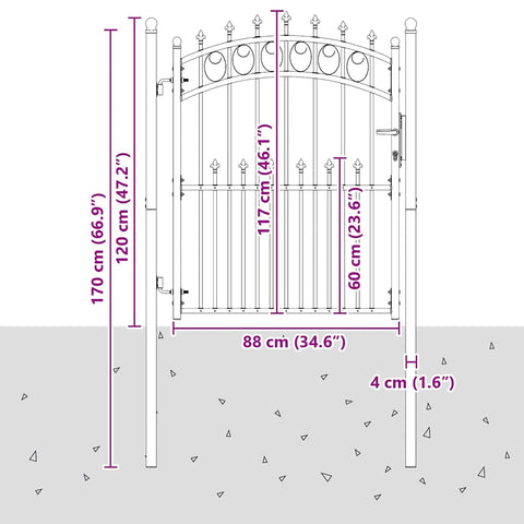 • Design arcuato elegante: Con un elegante top ad arco e spuntoni decorativi, questo cancello si adatta a molti stili di giardino. Mette insieme eleganza classica e un tocco moderno, aumentando l'appeal estetico di qualsiasi area esterna. Si inserisce perfettamente nel contesto naturale, rendendo la barriera un elemento stiloso.