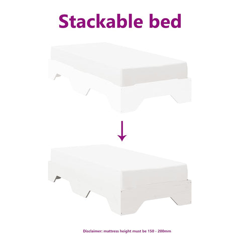 Questa struttura letto impilabile in legno offre una soluzione pratica e poco ingombrante per ogni casa.