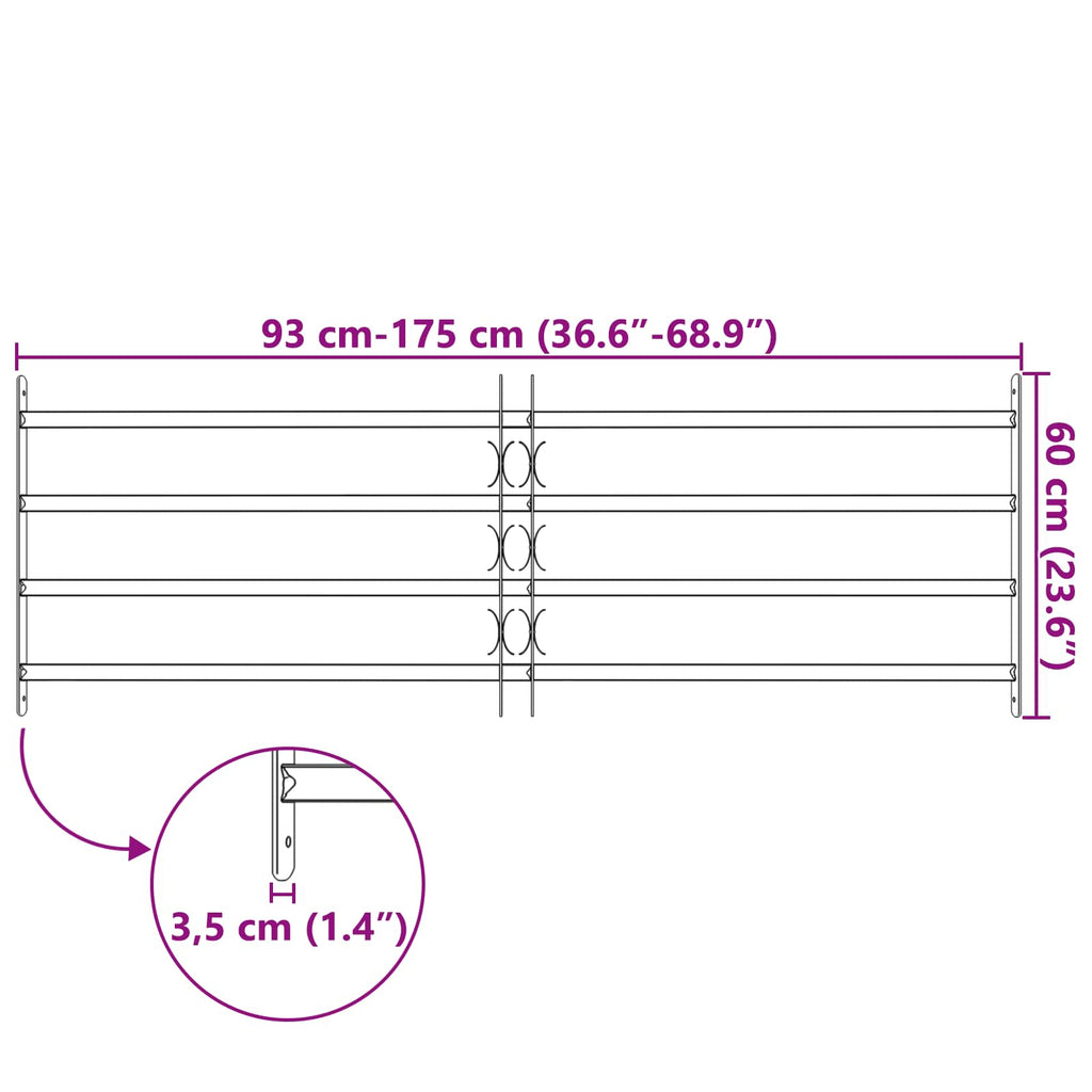 Griglia Finestra Nero 175 x 60 cm Acciaio verniciato a polvere