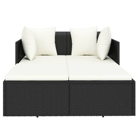 Lettino con Cuscini Nero 182x118x63 cm in Polyrattan