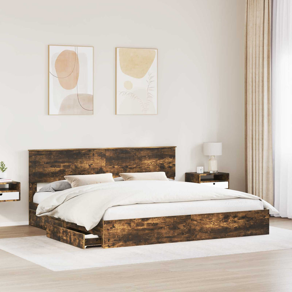 Letto con Contenitore con testiera Rovere fumé 200 x 200 cm