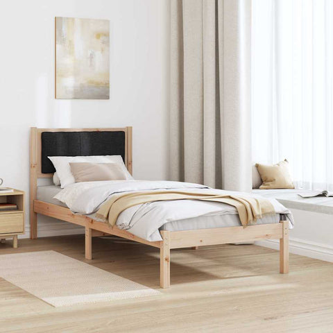 Letto con Testiera Rivestita Nero 80 x 200 cm Pino massello