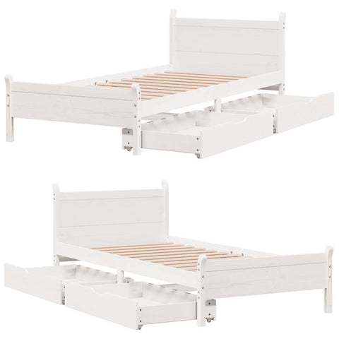 Letto senza Materasso Bianco 90x190 cm in Legno Massello Pino